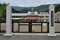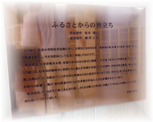 | 新谷小学校落成式で壁画の除幕式が行われました。 松本零士先生もご出席になり壁画に直筆のサインが入りました。 |