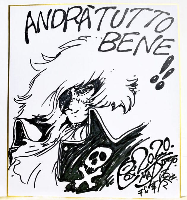 【ローマ共同】訪問先のイタリア北部トリノで昨年、体調不良を訴え入院した大洲市ゆかりの漫画家の松本零士さん(82)が、冶療を受けた病院を支援しようと代表作「宇宙海賊キャプテンハーロック」のイラストを色紙に描いた レプブリカ紙が20日報じた。